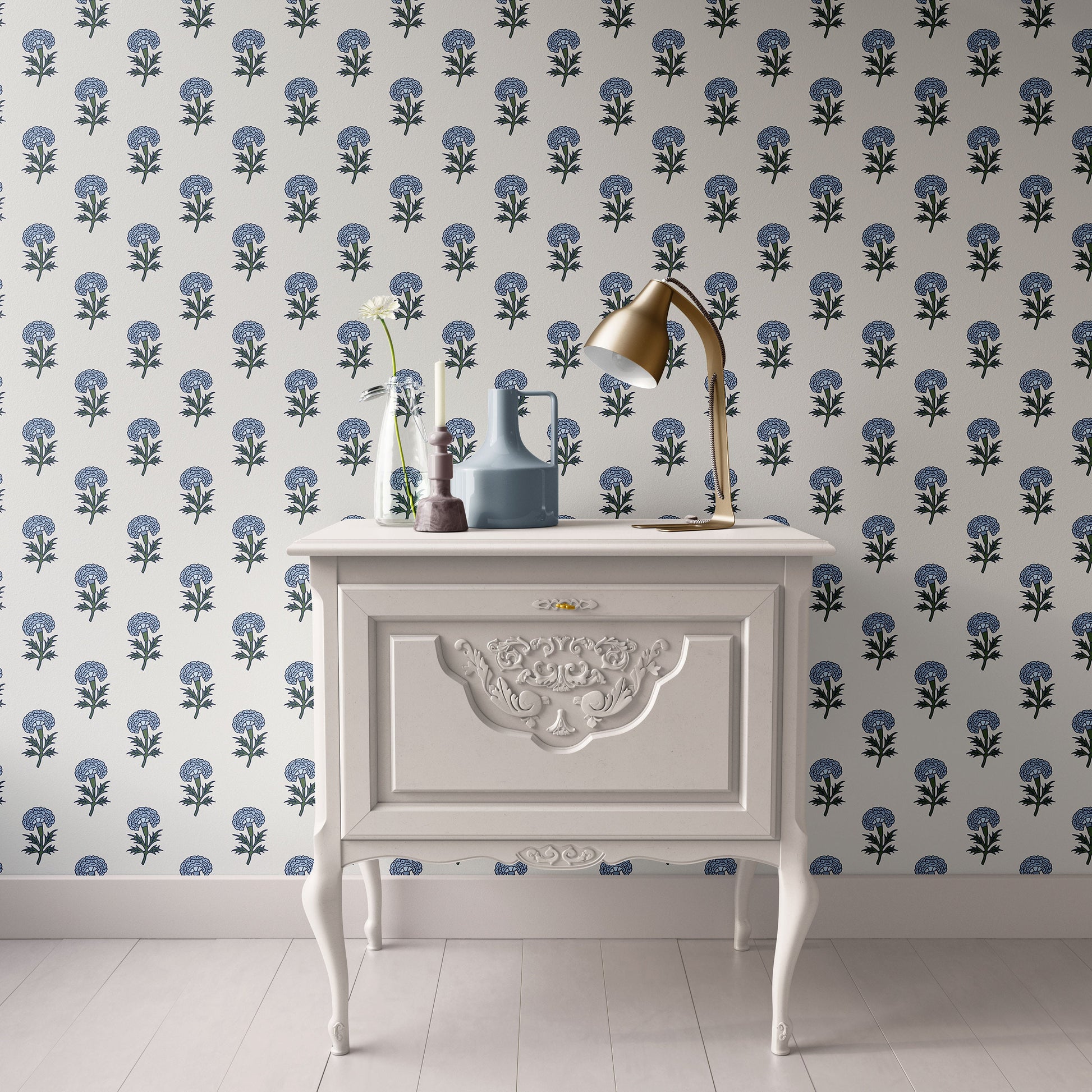 Vintage blue Indian block-print floral printed on highest-quality, premium matte paper. Super high-resolution pattern. All sheets come trimmed to size.