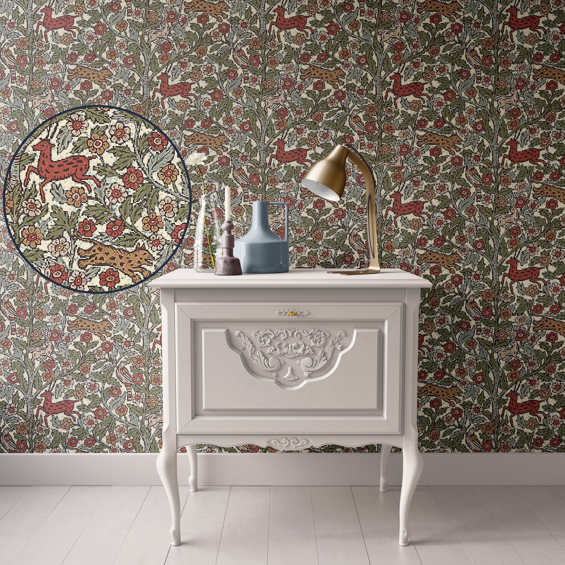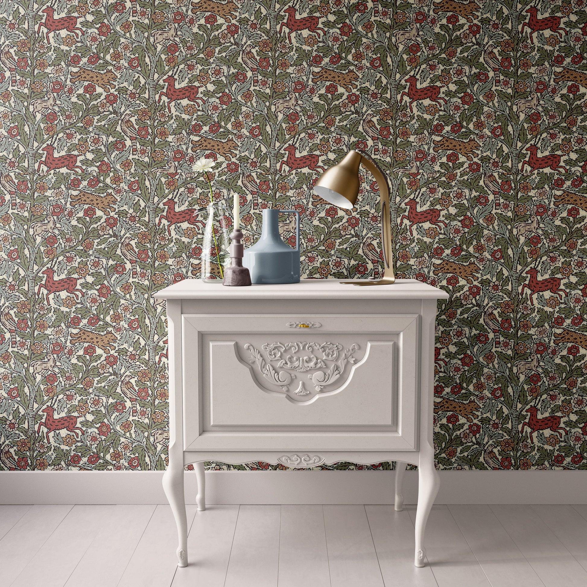 Lovely, fun wallpaper printed on highest-quality, premium matte paper featuring various flora and forest fauna. Would be lovely in a nursery or living room. All sheets are UV treated for lasting museum quality.