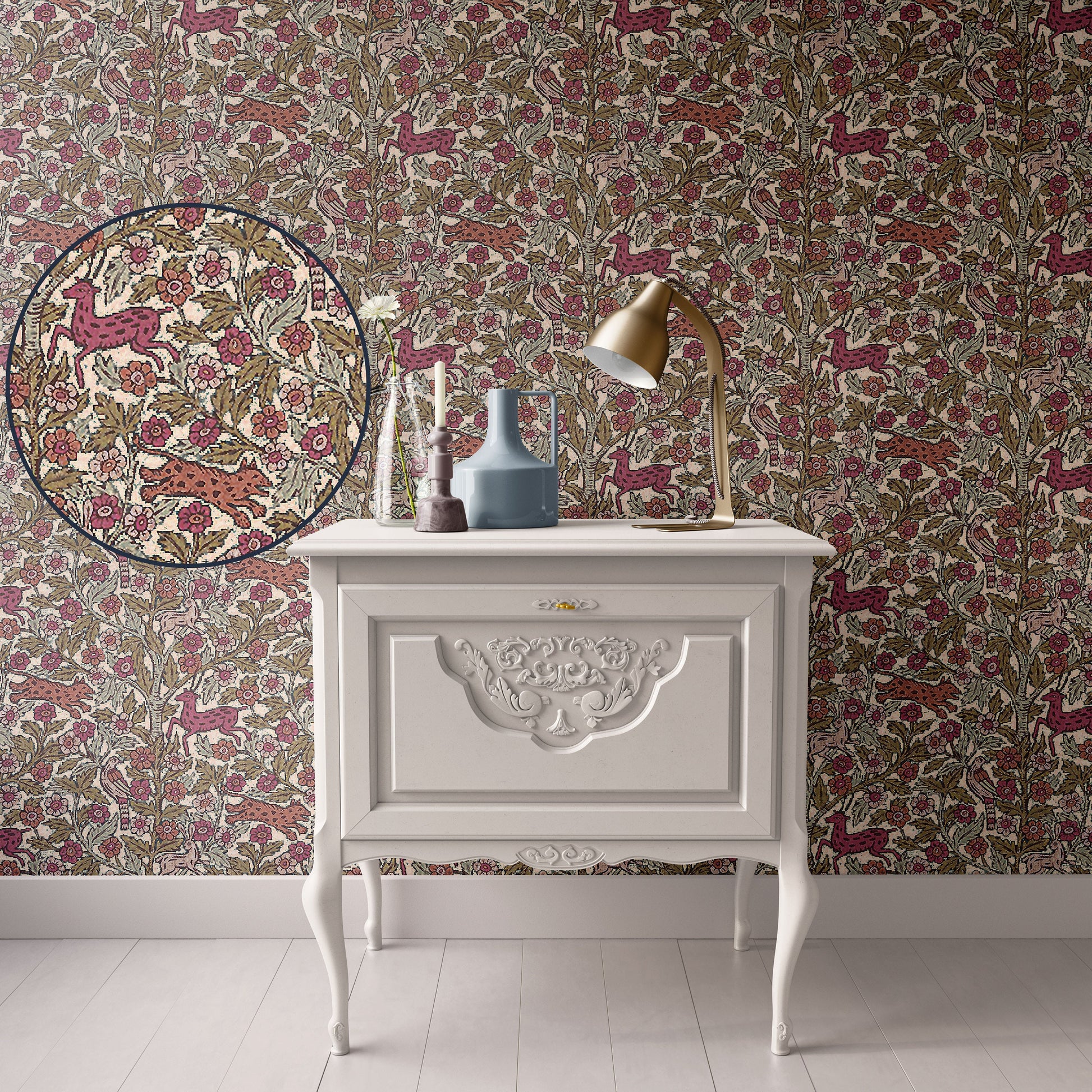 Dollhouse Wallpaper, Miniature 1:12, Forest Animals Warm Pink, Nursery